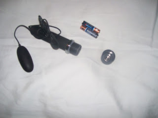I am not a huge fan of bullets but this one took me by surprise. It was quiet, small and with enough vibrations to work nicely, but not too much like a few other bullets I have tried. Like the traditional vibrator the material is the same smooth and velvety. The controls were pretty simple and it was easy to turn on and off. As you can see by the above picture the control is button operated. It takes 2 AAA batteries. The battery compartment gave me some issues and although inserting them was easy the removal of the batteries was difficult.